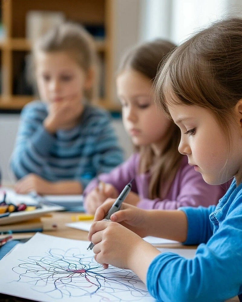 Мы ставим во главу раскрытие творческой индивидуальности каждого ребенка. Наши педагоги вдохновляют детей на смелое самовыражение, эксперименты с разными художественными стилями и техниками. Мы ценим не степень овладения мастерством, а неповторимость детского видения мира.